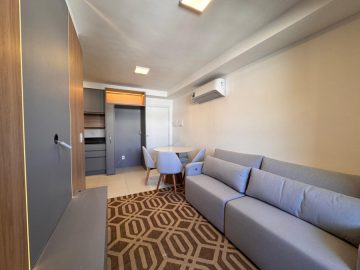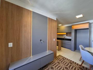 Excelente Apartamento novo semi mobiliado com 2 dormitórios, sendo 1 com móveis planejados e ar condicionado, Sala de estar semi mobiliada, Sacada com churrasqueira, Banheiro Social completo, Cozinha com móveis planejados e garagem coberta.