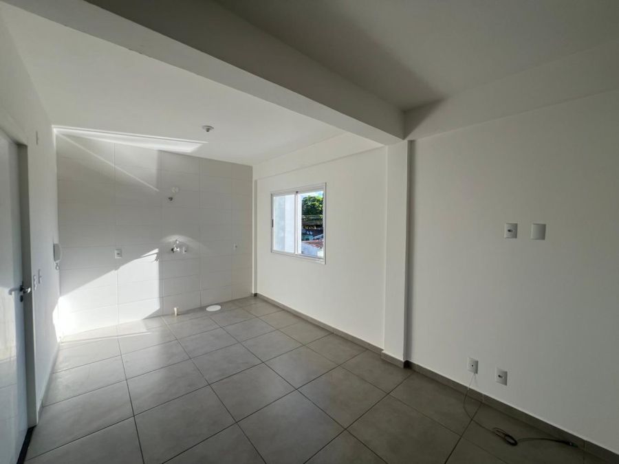 Apartamento com 2 dormitórios, sala, cozinha, área de serviço, banheiro Social e garagem.