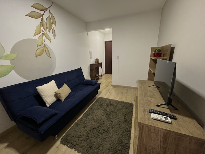 Desfrute de uma sala convidativa, ideal para momentos de relaxamento e convívio. O banheiro atende às necessidades do dia a dia com praticidade, e a vaga de garagem garante a segurança e comodidade para seu veículo.